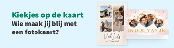 Zelf kaarten maken is heel eenvoudig. Kies een leuke kaart uit de collectie en klik op ‘kaart bewerken’. Upload je eigen foto, schrijf een persoonlijke tekst en maak de kaart helemaal persoonlijk door de achtergrond aan te passen en het lettertype of de kleuren te veranderen. Voeg eventueel nog kaders en figuren toe en klaar is de kaart!