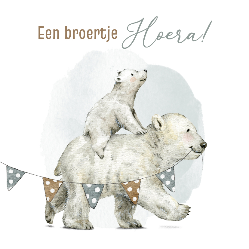 Felicitatie kaartje geboorte ijsbeer en broertje op zijn rug
