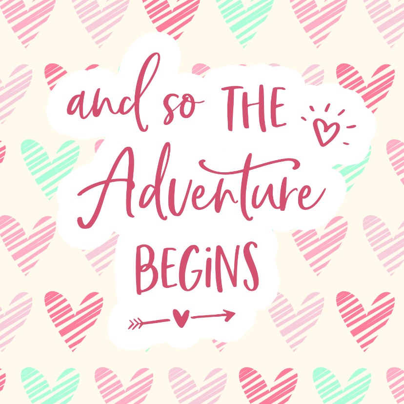 Moderne felicitatiekaart om te feliciteren met zwangerschap. Moderne engelse tekst met "so the adventure begins" de binnenzijde naar eigen invulling