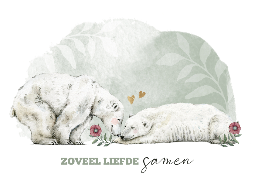 Lieve felicitatiekaart voor een kersvers bruidspaar of jubileum met twee liefdevolle ijsberen samen.
