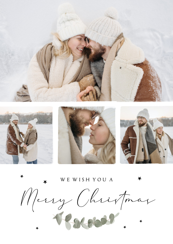 Fotokaart eucalyptustak en kerstwens vijf foto's