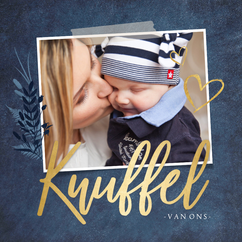 Voeg je eigen foto toe en stuur iemand een hele dikke knuffel voor de feestdagen. Een stijlvolle donkerblauwe vierkante kaart met goudlook accenten.