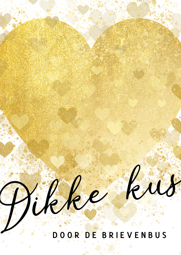 Valentijnskaart gouden hart dikke kus door de brievenbus