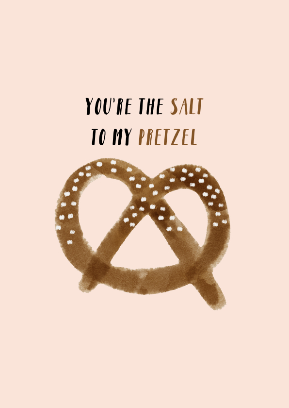 Leuke valentijnskaart met pretzel illustratie en leuke quote! De achtergrondkleur is naar wens aan te passen.