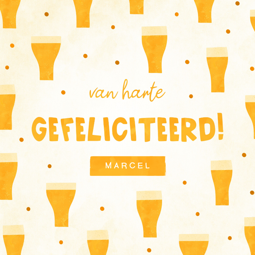 Verjaardagskaart met naam en patroon van biertjes