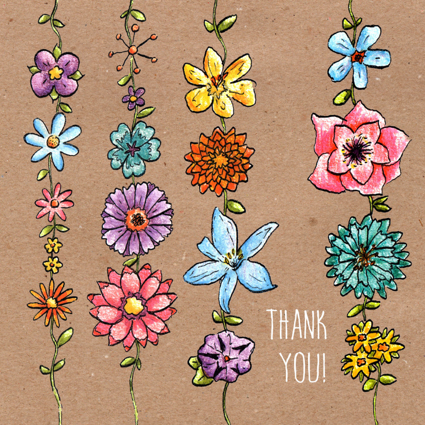 Een bedankkaartje van Illu-Straver vol met bloemen in allerlei kleuren.
