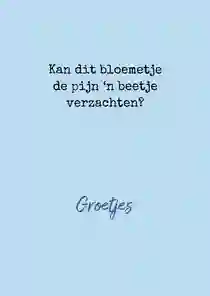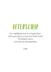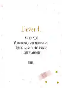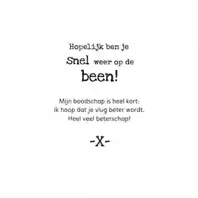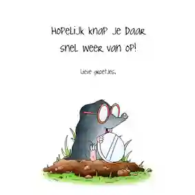 Bekijk ook onze beterschapskaarten met humor, voor als iemand iets gebroken heeft of als een dierbare naar het ziekenhuis moet. Of neem een kijkje bij onze dierenkaarten.