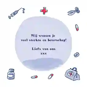 In sommige gevallen is er helaas een operatie nodig om de breuk te herstellen. De patiënt zal daardoor enige tijd in het ziekenhuis moeten blijven. Na de opname is het nog niet klaar, want dan komen er waarschijnlijk een aantal weken in het gips aan. Laat je dierbare weten dat je aan hem of haar denkt door een persoonlijke beterschapskaart naar het ziekenhuis te sturen. Zo’n kaartje is perfect om op te beuren en kan mooi hangen aan het prikbord achter het bed. Je kunt je voorstellen dat een muur vol met kaartjes bemoedigend werkt. Je kunt het kaartmoment trouwens nog specialer maken door een boeket droogbloemen, wat lekkers of leesvoer mee te sturen. Een brede glimlach is gegarandeerd.