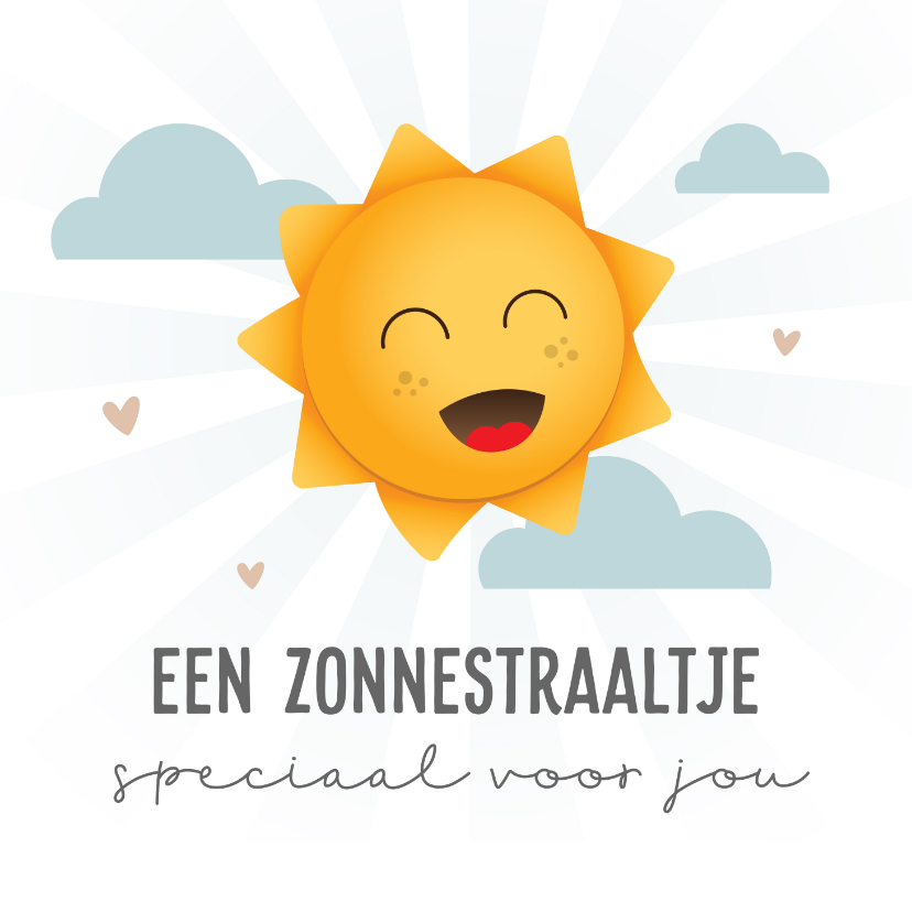 Leuk kaartje met schattig zonnetje om iemand veel beterschap te wensen.