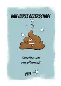 Niet alleen vrouwen plagen het andere geslacht graag door te zeggen dat ze ‘mannen griep’ hebben, ook mannen onderling houden er wel van om elkaar te stangen. Kan de man die je sterkte of een spoedig herstel wilt wensen, wel tegen een stootje? Dan is een kaart met een vleugje humor een uitstekend medicijn. Veel grappige beterschapskaarten voor een man bevatten afbeeldingen van grappige dieren of een woordspeling naar de botbreuk, het ongeluk of het opgelopen virus. Een beterschapskaart met fruit kan ook prima voor een man.