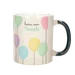 De mok is zwart en onthult de bedrukte foto zodra je er een warme drank in schenkt.