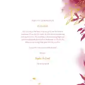 Bedankkaart communie met gouden bladeren en roze waterverf