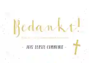 Voeg je eigen foto's toe en maak zo gemakkelijk deze eenvoudige communie bedankt kaart. Met ruimte voor 3 eigen foto's en aanpasbare tekst.