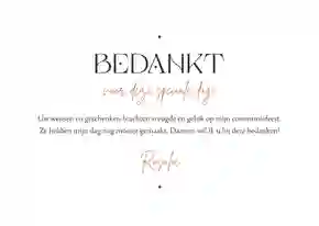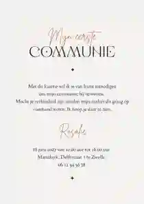 Een stijlvolle en persoonlijke menukaart voor een communiefeest met koperkleurige vogeltjes.