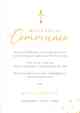 Stijlvolle oudroze liggende bedankkaart voor de communie van een meisje. Met goudlook tekst en spetters, naam en datum. Met of zonder goudfolie.