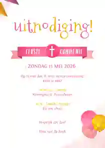 De eerste heilige communie van jullie meisje is een speciale gebeurtenis. En dat wil je natuurlijk vieren met familie, vriendjes en vriendinnetjes. Stuur daarom alvast een communie uitnodiging, zodat je deze bijzondere dag kunt delen met je dierbaarste mensen. Duik samen met jullie dochter in de collectie ‘Communiekaart meisje’ en ga op zoek naar de uitnodiging waar jullie hart sneller van gaat kloppen.