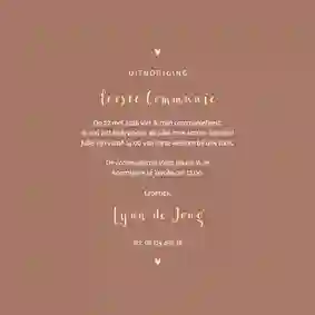 ✨ Geef deze bijzondere dag een gouden randje door een communiekaart meisje met foliedruk te versturen. Je kunt kiezen uit goud-, zilver- en koperfolie.