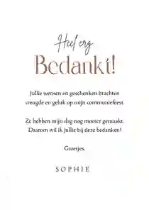 ✨ Geef deze bijzondere dag een gouden randje door een communiekaart meisje met foliedruk te versturen. Je kunt kiezen uit goud-, zilver- en koperfolie.