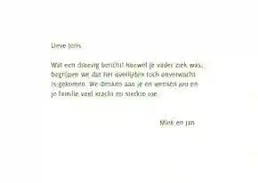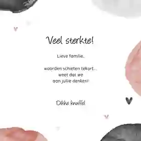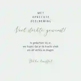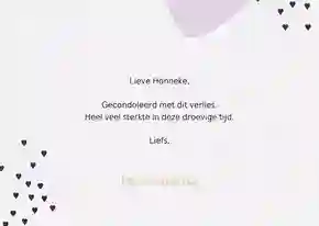 Tip: in de kaartmaker kun je de tekst op de voorkant van de kaart gemakkelijk veranderen van ‘sterkte met dit grote verlies’ in ‘sterkte met het verlies van jouw moeder’ of vice versa.