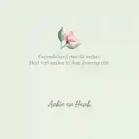 Het kiezen van een condoleancekaart kan best moeilijk zijn. Vooral als iemands moeder overleden is. Om je hier een handje bij te helpen, hebben onze designers deze pagina gevuld met de mooiste condoleancekaarten voor nabestaanden die hun moeder verloren zijn. Kenmerkend voor de meeste kaarten zijn de zachte, vrouwelijke pasteltinten en subtiele illustraties op condoleancekaarten met bloemen en bladeren. Hierdoor stralen de kaarten niet alleen rust uit, maar symboliseren ze ook warmte en liefde.