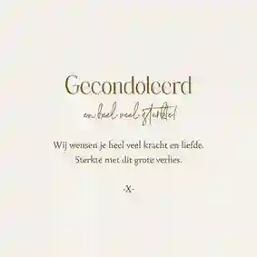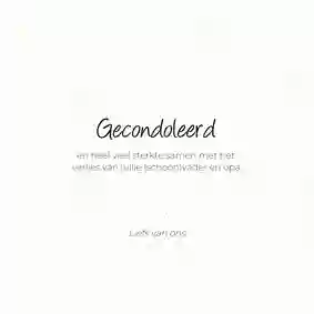 Als je iemand moet condoleren, dan is dat altijd even moeilijk. Een passende condoleance tekst vinden kan dan ook best lastig zijn. Wij hebben een aantal passende condoleance teksten verzameld om jouw medeleven te tonen aan de nabestaanden. De teksten zijn ook te gebruiken als tekst voor op een rouwkaart of condoleancekaarten . Op zoek naar meer rouwkaart teksten? Kijk dan eens bij de verzameling rouwkaart teksten die we hier speciaal voor verzameld hebben.