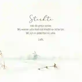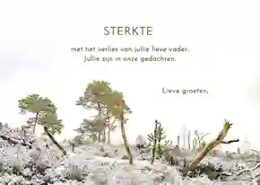 Ik wil u al een week deze kaart sturen. Al een week probeer ik iets te verzinnen wat ik u kan schrijven, maar ik weet het niet... ik weet het echt niet.. en ik weet het nu nog steeds niet. U laten weten dat ik aan u denk en u ondanks alles toch veel sterkte wens is hopelijk voldoende voor u om u voor heel even een gevoel te geven dat er zo veel mensen met u meeleven.