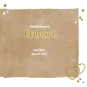 Wil jij de dopeling of zijn/haar ouders feliciteren? Dan maak je een felicitatiekaart bij Kaartje2go. Je kunt bij ons kiezen uit diverse kaarten. Je maakt heel eenvoudig een selectie door jouw wensen aan te vinken in het filtermenu. Ben je bijvoorbeeld op zoek naar een kaart met bloemen of dieren, dan kun je dit selecteren in het menu. Ook kun je een kaart zoeken binnen verschillende stijlen: hip, modern of juist klassiek. En ben je specifiek op zoek naar een kaart voor een man of vrouw, dan kun je dit ook aangeven. Zodra je een mooi ontwerp hebt gevonden, kun je de kaart helemaal naar eigen smaak aanpassen in de kaartmaker. Fleur de kaart op met één van onze illustraties of upload zelf een foto. Een andere mooie aanvulling is om een bijbeltekst als quote op de kaart te zetten. Schrijf ook een mooie felicitatietekst of wens, en de kaart is klaar om op de post te gaan.