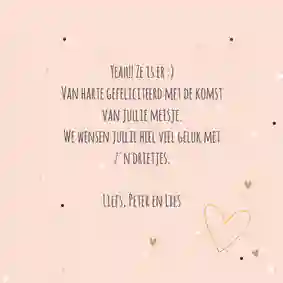 Een gefeliciteerd geboortekaartje voor een meisje sturen is al superattent. Maar wil je nog een extra dosis roze confetti in je kaart stoppen, dan zijn we je graag van dienst.