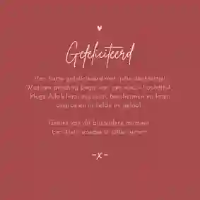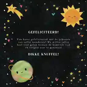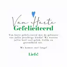 Feliciteren bij de geboorte is een mooi gebaar. Als je niet in de gelegenheid bent om direct langs te gaan, kun je de ouders verrassen met een leuk kaartje. Op dit kaartje schrijf je een mooie tekst of gelukswens en de felicitatie met de geboorte. Wens jullie vrienden, familie of kennissen een fijne periode toe na de geboorte van hun kindje.