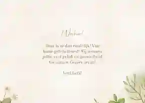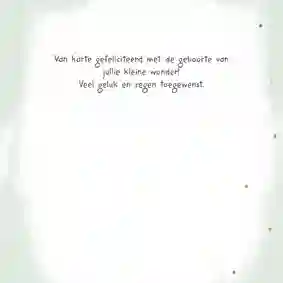 Je wilt de trotse ouders uiteraard direct feliciteren met de geboorte van hun zoontje of dochtertje. Maar het kan natuurlijk zijn dat je niet onmiddellijk langs het nieuwe ouderpaar kan gaan omdat je een te drukke agenda hebt. Dan bestaat er nog steeds de mogelijkheid om ze te verrassen met een plezante felicitatiekaart. Schrijf er een enthousiaste toekomstwens op en feliciteer hen beiden met de geboorte. Het kindje zelf zal later dan de kaartjes kunnen bekijken en het blijft een prachtige herinnering aan dat ene belangrijke moment.
