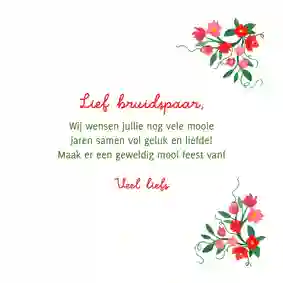 Verliefd, verloofd, getrouwd! Van harte gefeliciteerd met jullie huwelijk. We wensen jullie veel liefde, geluk en wijsheid toe.