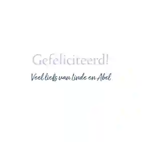 Ieder koppel is uniek. Daarom hebben onze designers felicitatiekaarten ontworpen in de meest uiteenlopende stijlen. Van klassiek tot modern en alles daartussenin. Staat het pasgetrouwde stel erom bekend dat ze elkaar graag voor de gek houden? Dan is een grappige kaart met een ludieke tekst op z’n plaats. Ook moderne kaarten met Just Married, a toast to the happy couple of simpelweg ‘getrouwd’ veroveren vaak een prominente plek aan de slinger met felicitatiekaarten.