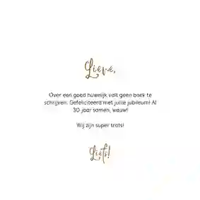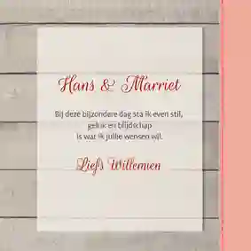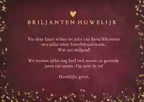 Een felicitatiekaart voor een huwelijksjubileum is heel origineel en gemakkelijk te maken bij Kaartje2go. Voor elk huwelijksjubileum is er wel een passende kaart. Bovendien zijn de felicitatiekaartjes van Kaartje2go helemaal niet duur.