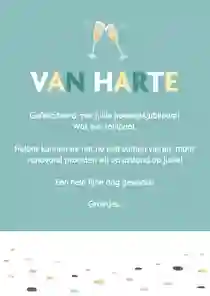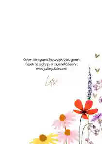 Een felicitatiekaart voor een huwelijksjubileum is heel origineel en gemakkelijk te maken bij Kaartje2go. Voor elk huwelijksjubileum is er wel een passende kaart. Bovendien zijn de felicitatiekaartjes van Kaartje2go helemaal niet duur.