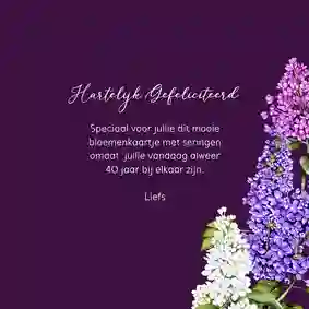 Er vinden meer en meer 40-jarige huwelijken plaats, wat ook wil zeggen dat er meer felicitaties per kaart verstuurd worden. Wil jij ook eens iemand die 40 jarig huwelijk achter de rug heeft feliciteren met dat lange samenzijn? Doe het eens met een leuke 40 jaar getrouwd felicitatiekaart van Kaartje2go. Succes verzekerd.