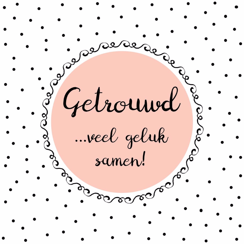 Zwart/wit/roze felicitatiekaartje om te sturen bij een huwelijk.