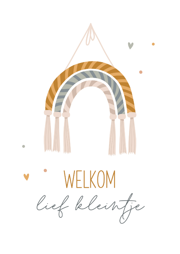 Moderne kaart met getekende boho regenboog in aardekleuren.