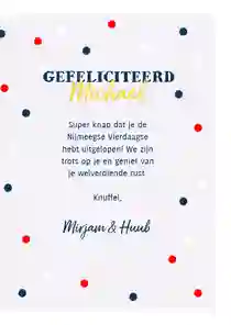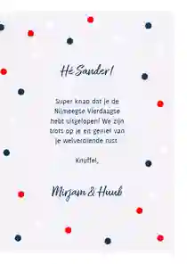 Er staat een mooie tekst op, en alles aan het kaartje is voor elkaar. Tijd om te kijken of er nog een leuke extra bij de kaart past. Kies voor een gekleurde envelop of een luxe papiersoort. Of verras jouw kampioen met een leuke video op de kaart. Als je kiest om het kaartje direct te laten versturen zorgen wij er samen met PostNL voor dat hij zo snel mogelijk geleverd wordt. Op werkdagen voor 21:00 uur besteld is in 95% van de gevallen de volgende dag geleverd.