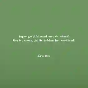 Er staat een mooie tekst op, en alles aan het kaartje is voor elkaar. Tijd om te kijken of er nog een leuke extra bij de kaart past. Kies voor een gekleurde envelop of een luxe papiersoort. Of verras jouw kampioen met een leuke video op de kaart. Als je kiest om het kaartje direct te laten versturen zorgen wij er samen met PostNL voor dat hij zo snel mogelijk geleverd wordt. Op werkdagen voor 21:00 uur besteld is in 95% van de gevallen de volgende dag geleverd.