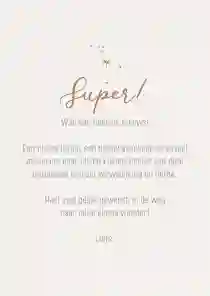 - Kies het formaat en voeg eventueel een leuk bijpassend cadeau toe. Bestel jouw persoonlijke kaartje en wij gaan direct voor je aan de slag.