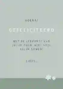 - Kies het formaat en voeg eventueel een leuk bijpassend cadeau toe. Bestel jouw persoonlijke kaartje en wij gaan direct voor je aan de slag.
