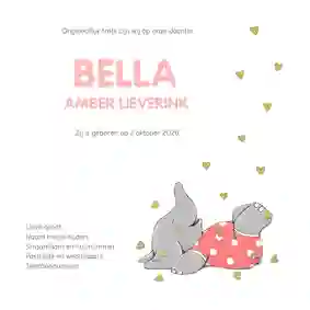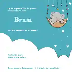 - Een geboortekaartje met een baby olifant, twee baby olifanten (voor tweelingen) of een hele familie olifanten bij elkaar.