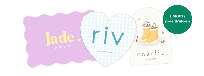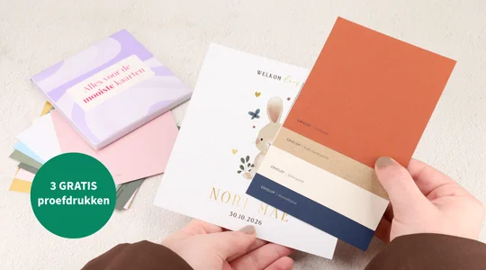 Check-check-dubbelcheck! Wil je zeker weten dat jullie kaartje perfect is? Bestel dan een gratis proefdruk van het geboortekaartje, inclusief:
