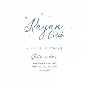 Met een islamitisch geboortekaartje kun je jullie geloof uitdragen en je kleintje ermee omringen. Je kunt op deze pagina een mooi geboortekaartje met islam symbolen uitkiezen en persoonlijk maken. Maar het is ook hartstikke makkelijk om zelf aan de slag te gaan in onze kaartmaker. Kies bijvoorbeeld een geboortekaartje voor een meisje of een babykaartje voor een jongen en pas ‘m zelf aan met mooie, islamitische symbolen en een bijzondere tekst vanuit de islam. Zo maak je heel eenvoudig jullie eigen unieke Arabische geboortekaartjes.