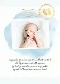 Het geboortekaartje maken gaat snel en gemakkelijk bij Kaartje2go. Begin met het kiezen van een paspoort geboortekaartje uit de collectie. Voeg daarna de gegevens toe en de eerste foto van jullie kindje. Alle gegevens ingevuld? Dan kun je verdergaan met figuren en kaders toevoegen. Zo maak je de kaart nog persoonlijker. Naast de gegevens over jullie kindje kun je ook een mooie tekst of quote toevoegen. Inspiratie nodig? Neem een kijkje tussen onze voorbeeldteksten. Als je helemaal tevreden bent met het geboortekaartje kun je kiezen voor een gratis proefdruk of het kaartje direct bestellen.