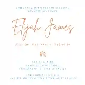 Regenbogen hebben iets magisch, net als de komst van een kindje. Ze staan voor hoop, veerkracht en positiviteit. Dat maakt het een mooi symbool voor een geboortekaartje. De regenboog kun je ook goed combineren met andere kaders en figuren. Dat zie je terug in onze ontwerpen, bijvoorbeeld met: