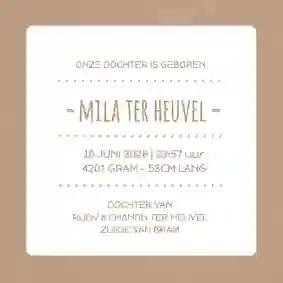 👶🏼 Tip: Op silhouet geboortekaartjes zie je de mooiste babynamen voorbij komen. Gebruik onze geboortekaartjes met naam tool om te zien op welk kaartje de naam van jullie mini het meest tot zijn recht komt.