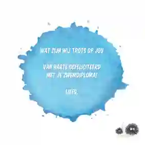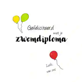 Kies uit onze galerij met felicitatiekaarten voor het behalen van het zwembrevet een leuke kaart om iemand uit je omgeving te feliciteren. Als je geen toepasselijke kaart vindt, dan kan je ze zelf aanpassen. Personaliseer ze met een eigen illustratie of foto en voeg teksten, grappige figuurtjes en kaders toe. Nu alleen nog versturen. Dat kunnen wij trouwens ook voor je doen.