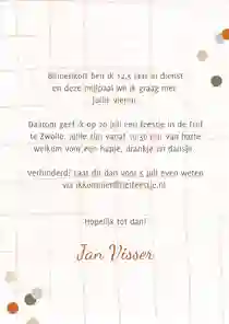 Het kiezen van een 12,5 jaar getrouwd uitnodiging is misschien niet even makkelijk, al zeggen we het zelf. Want wat hebben onze designers veel leuke kaarten gemaakt! Je kunt daarnaast ook nog tussen onze andere jubileumkaarten kijken, en hier het jubileumjaar aanpassen naar 12,5. Heb je je favoriete uitnodiging gevonden, dan is het extra leuk om hem nog een beetje persoonlijker te maken. We geven je 3 gouden koperen tips.