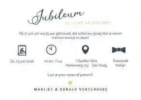 Kijk ook eens tussen onze andere jubileumkaarten. Je favoriet gevonden? Pas dan zelf het jaartal aan in de kaartmaker.
